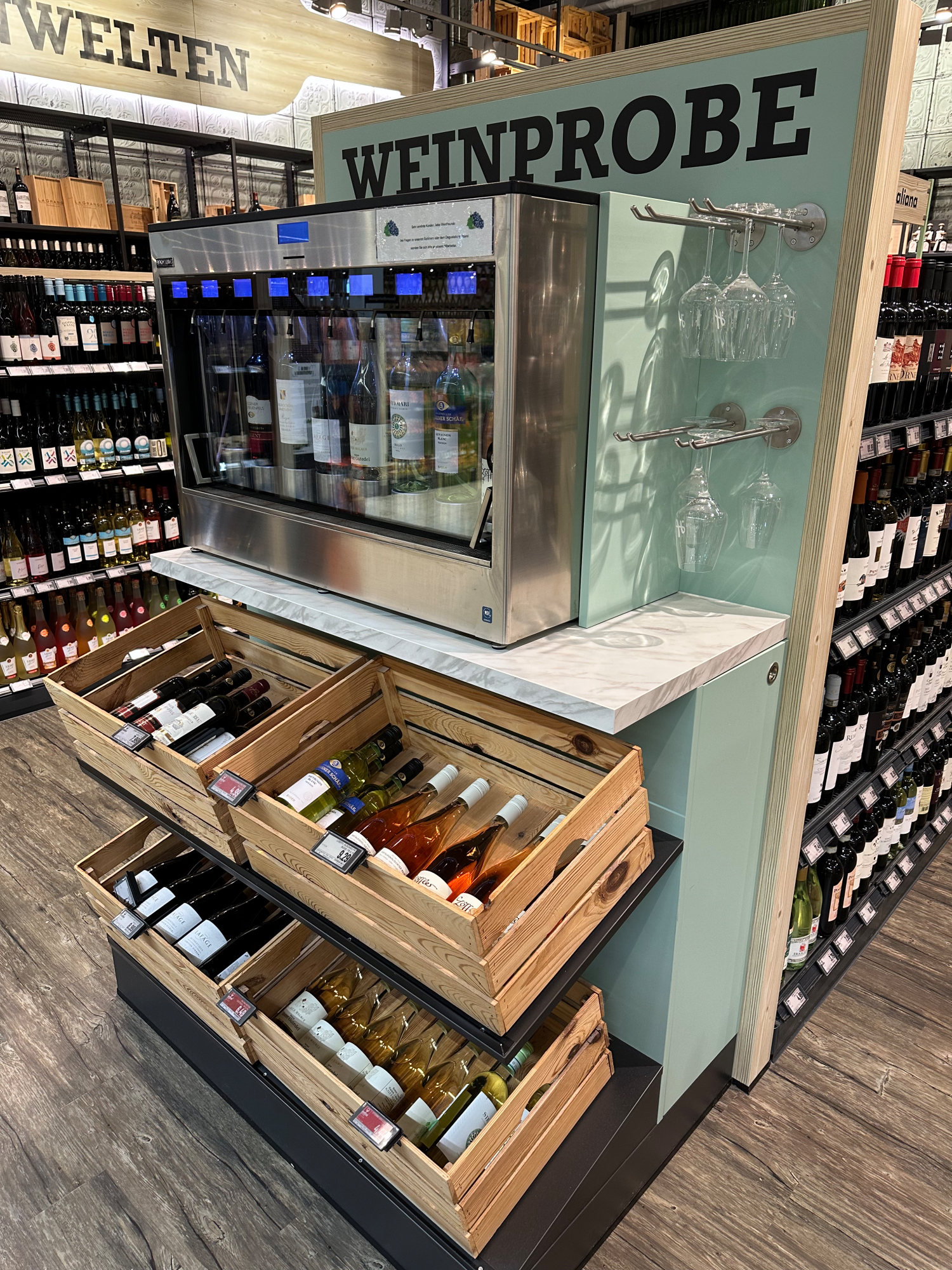 I spotted this “wine tasting machine” in a Edeka supermarket near Freiburg in southwestern Germany,